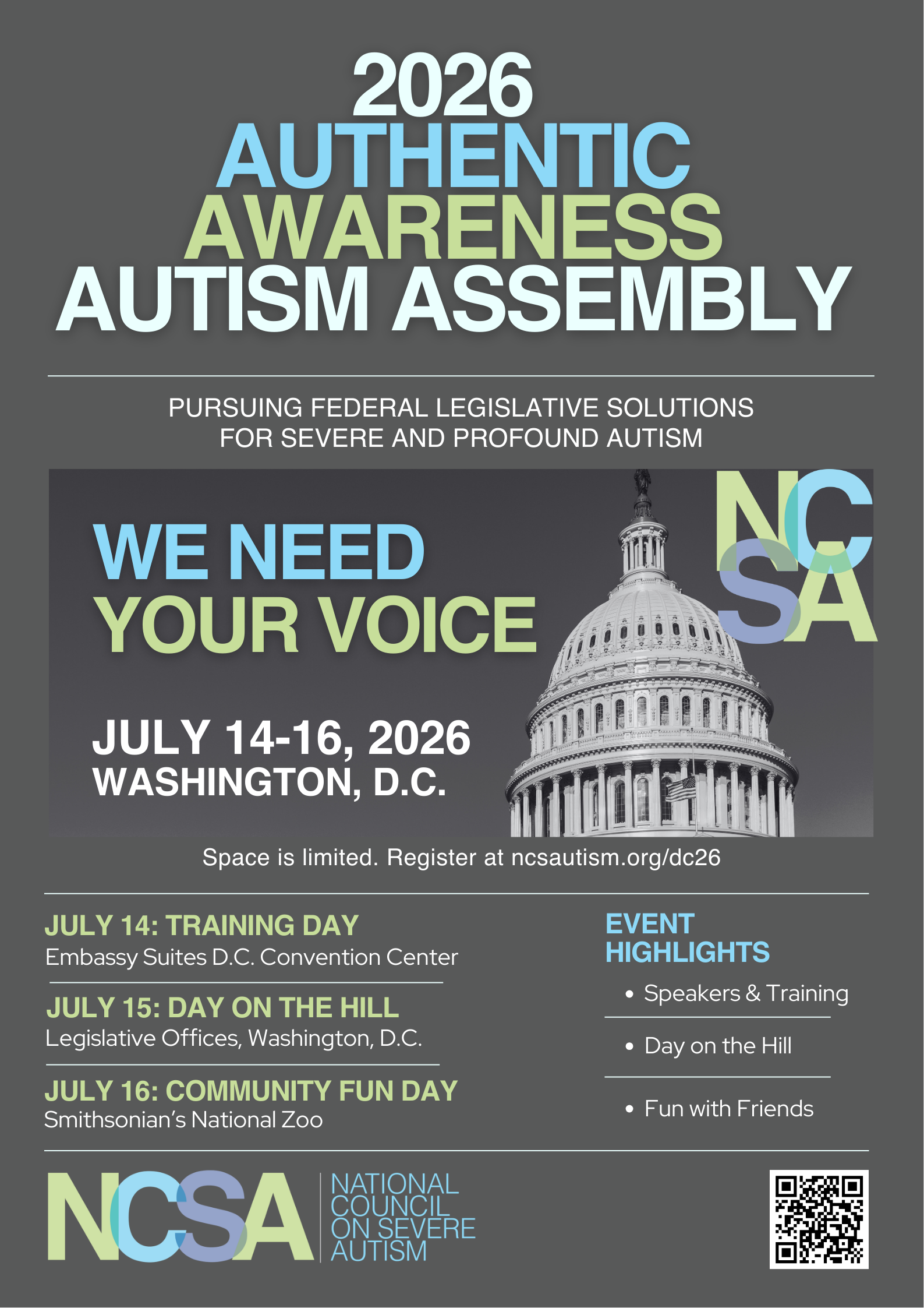 Join National Council on Severe Autism at Embassy Suites D.C. Convention Center for the Authentic Awareness Autism Assembly in Washington, D.C. July 14-16, 2026. Space is limited. Book early to secure your seat.